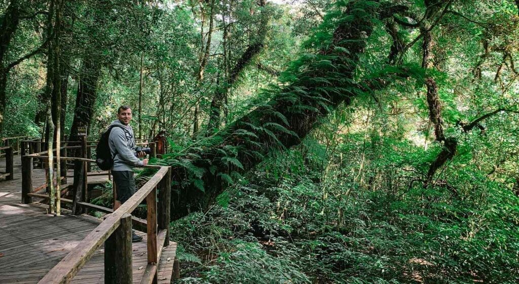 Este parque nacional es el punto más alto de Tailandia y se encuentra a 70 kilómetros de Chiang Mai. Cuando empezamos a organizar el viaje a Tailandia, pensábamos en ir en moto pero empezaron a darnos mal tiempo para ese día y decidimos no complicarnos.