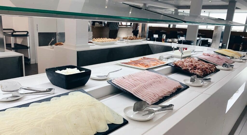 El comedor también tenía una elegante decoración y la presentación de la comida en el bufete nos encantó.