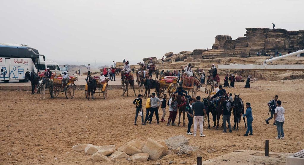 Los camellos y los caballos están sometidos a altísimas temperaturas sin ningún tipo de sombra, ni comida, ni agua. Se les ve completamente deshidratados cargando con el peso de los turistas en sus espaldas. Se rompe el corazón solo de verlos de verdad.