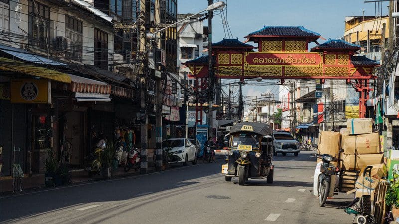 Con su icónico arco rojo en Chang Moi Road, Chinatown ofrece una experiencia sensorial única, con mercados, templos y tiendas que reflejan la rica cultura china.