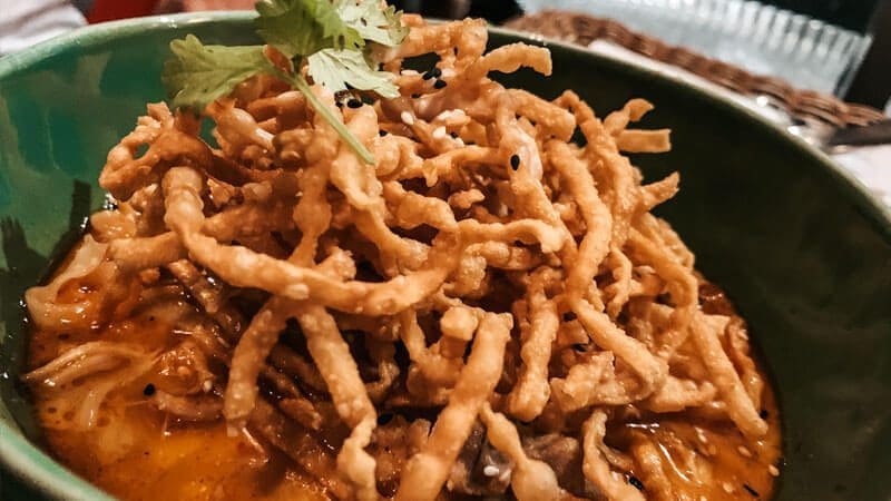 Sin embargo, si te gusta el picante, no puedes perderte el plato estrella del norte Tailandia, el Khao Soi, un delicioso caldo de curry de coco con fideos de arroz que aquí también tiene su toque picante característico.