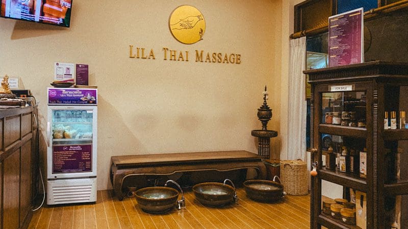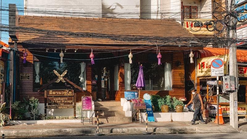 En Chiang Mai hay muchos centros de Lila Thai Massage, pero no pudimos conseguir una cita en ese momento, así que tuvimos que buscar en otro lugar. Os recomendamos hacer reservas con anticipación si queréis ir a alguno.