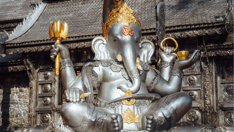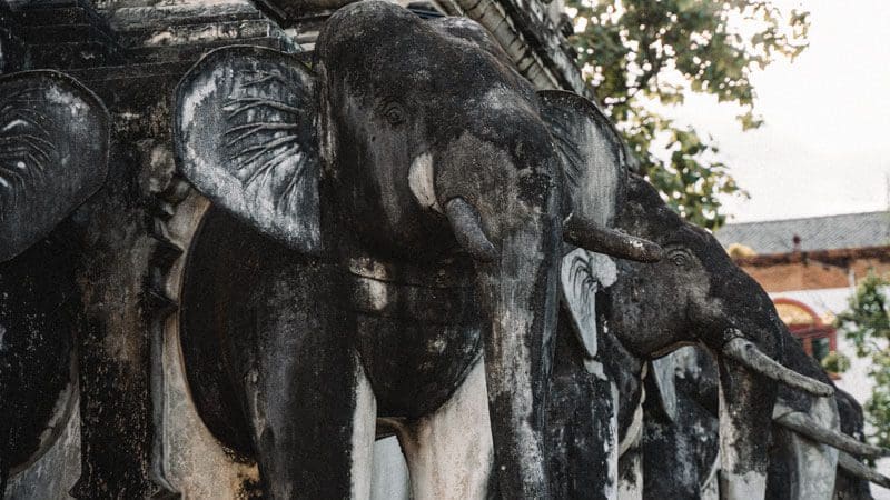 Este templo es conocido por su impresionante chedi, rodeado por 28 estatuas de elefantes, destinadas según las supersticiones locales, a fortalecer la ciudad y atraer buena suerte y paz.