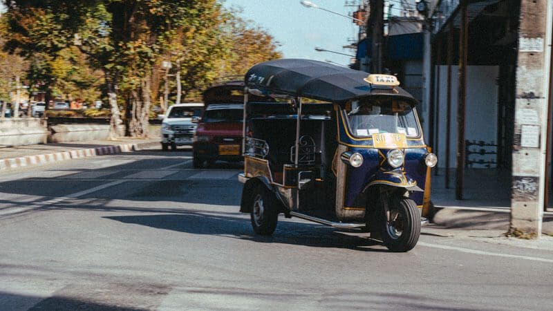 Puedes encontrar tuk-tuks en casi todas partes de Chiang Mai, y son una forma económica de desplazarse. Nosotros los cogimos varias veces durante nuestros 3 días en Chiang Mai sobre todo para volver de los mercados nocturnos y se puede regatear el precio.