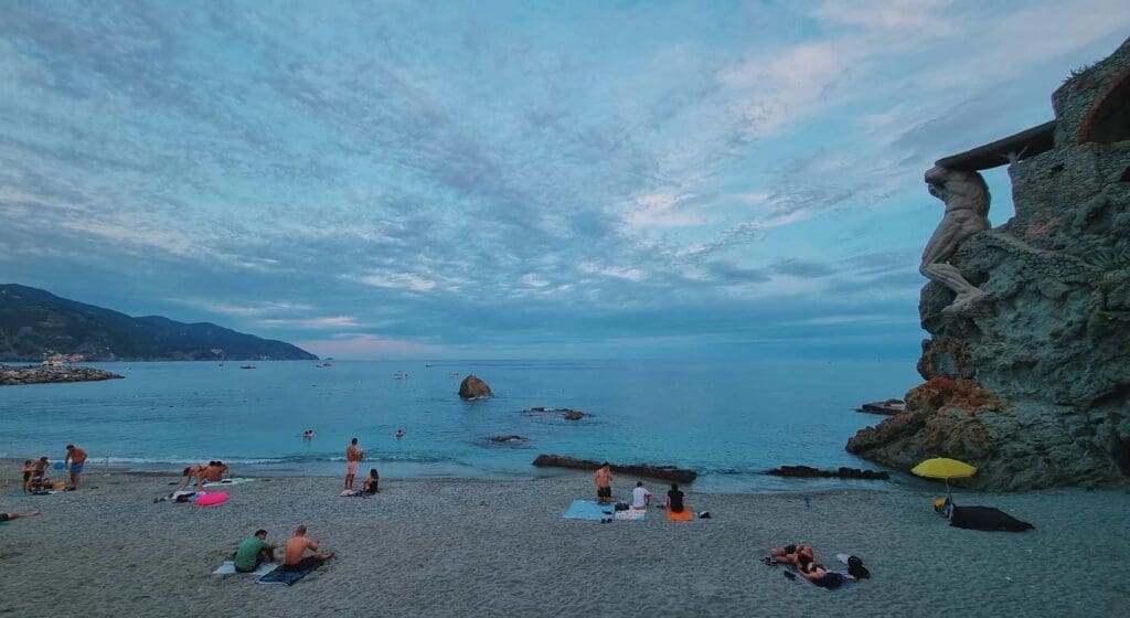 Después de comer nos tocaba volver a Monterosso. Lo mejor de este pueblo es que tiene un tramo largo de playa de arena fina (Playa Fegina). La playa se encuentra a la altura de la estación de tren.