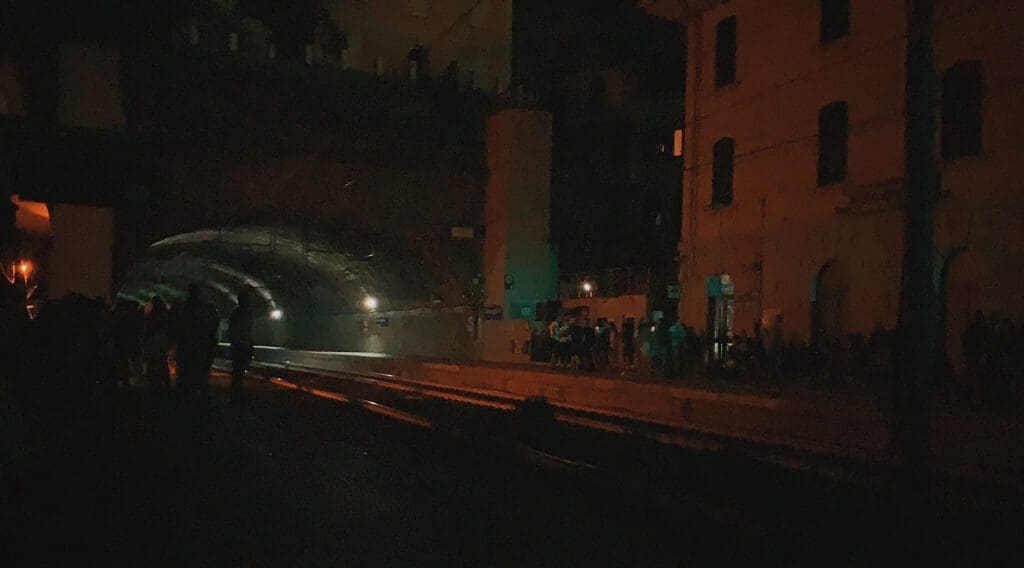La suerte es que a pesar del apagón los trenes seguían pasando aunque iban con muchísimo retraso. La gente en la estación se tomó la situación de estar a oscuras con bastante humor cantando y bromeando.