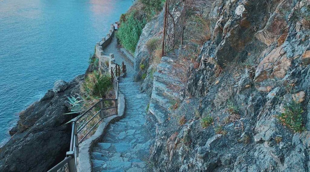 Las rutas que van de un pueblo a otro suben por las cimas de las colinas y tienen muchísimas escaleras, así que no se recomienda hacerlo si no estáis en buena forma física, si hay temperaturas muy altas o si no tenéis el calzado adecuado.